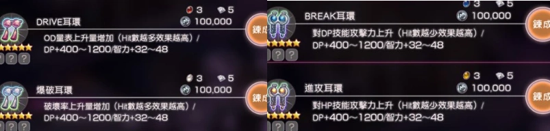 ?優先一個進攻耳環→主要造 DRIVE 耳環→一個爆破耳環備用→ Break 耳環可選目標:造出 6 條 dp+1200 的耳環。?