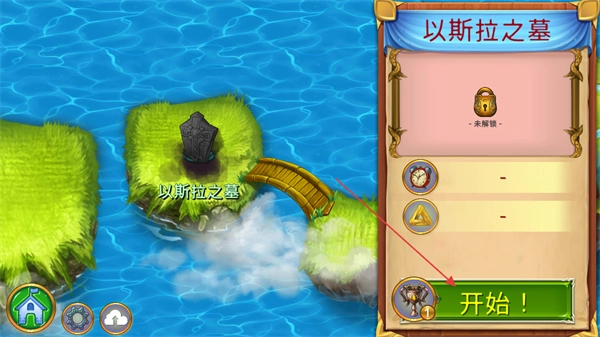 1、進入以斯拉之墓關卡界面,該玩法當前處于未解鎖狀態,點擊界面右下角的開始按鈕,即可開啟對應的關卡流程。