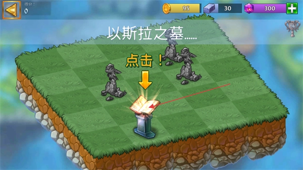 2、進入以斯拉之墓關卡后,按照界面中的點擊提示,點擊對應的書本道具,觸發后續的游戲操作指引。