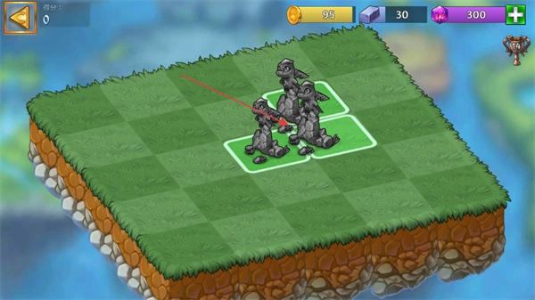 4、將雕像拖動到同一綠色區域使其彼此相鄰,觸發自動融合效果,完成這一步操作即可推進以斯拉之墓關卡的進度。
