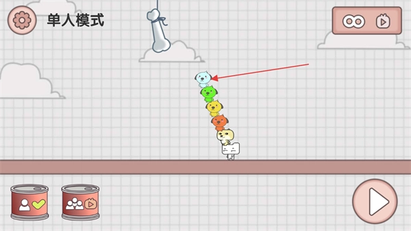 1、堆疊在一起的寵物形象對應著已解鎖的角色,點擊界面右下角的播放按鈕,就能進入相應關卡開始游戲。