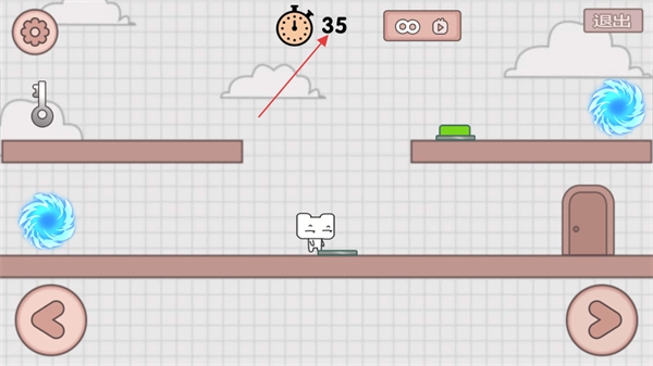 4、該關卡設有計時限制,目前剩余35秒,你需要在計時結束前操控角色拿到鑰匙并打開大門,這樣才能滿足通關要求。
