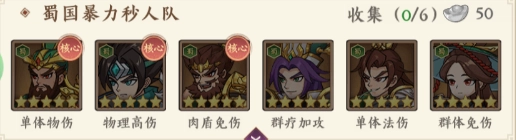 3、關羽+趙云+張飛+諸葛亮+法正+黃月英