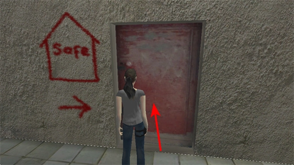 2、跟隨場景中的標識指引,移動至標注安全的門處,這是尋找庇護所的基礎操作,靠近后可進入相對安全的區域,暫時規避外部的威脅。