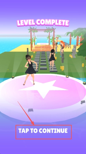4、完成關卡:當界面顯示“LEVEL COMPLETE”時,點擊“TAP TO CONTINUE”領取獎勵并進入下一關。