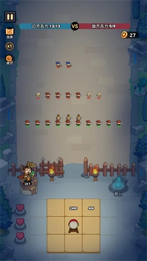 4、上陣后會自動進入戰斗,你的士兵和國王會自動攻擊敵人,當敵人被全部消滅后就可以進入下一波。
