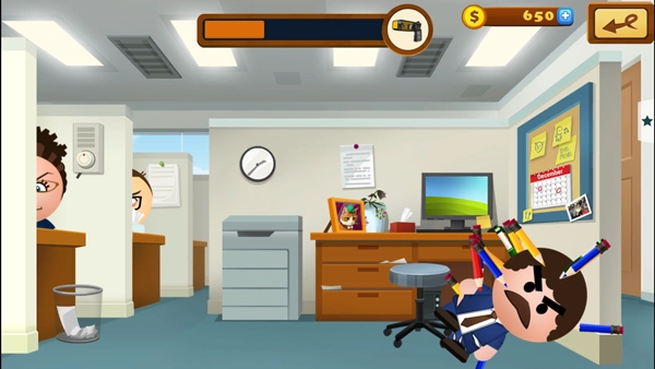 2、創意道具:能夠解鎖和運用各類趣味十足的道具來與老板對抗,像泡泡機器人、笑話手榴彈之類,讓整個過程變得更具趣味性和刺激性。