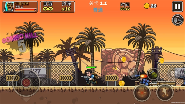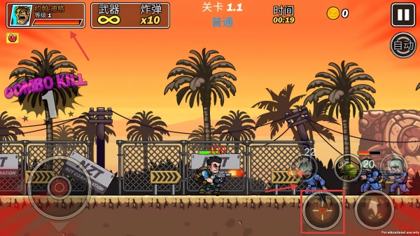 4、碰到成群的敵人時(shí),可以投擲手榴彈來(lái)清理戰(zhàn)場(chǎng),這樣既能保持連擊獲取更多金幣,還能提高戰(zhàn)斗效率,助力關(guān)卡推進(jìn)。