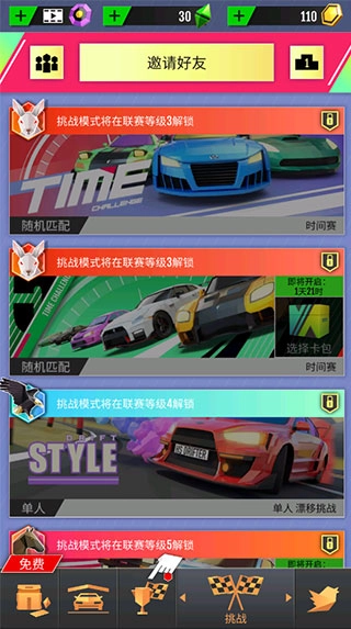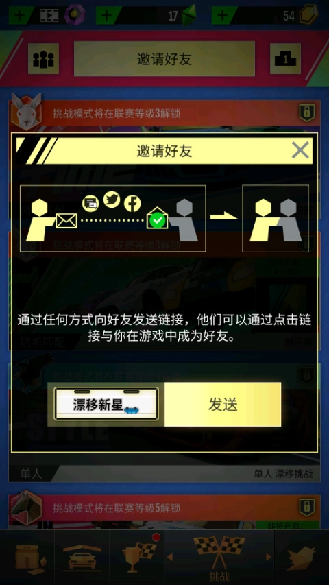 1、進入游戲后點擊挑戰,點擊界面上方的邀請好友;
