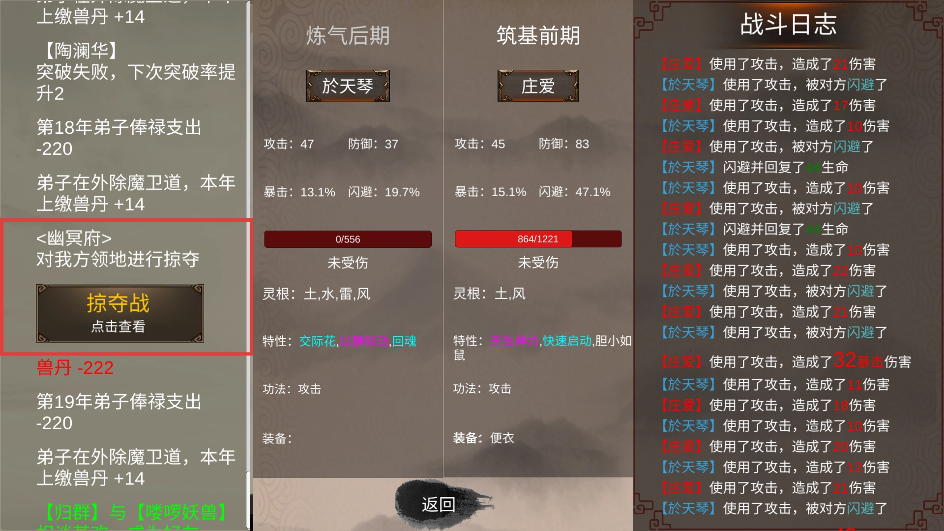 4、當【幽冥府】掠奪領地時,點擊【掠奪戰】查看戰斗日志,了解弟子戰斗數據,及時調整策略應對入侵。