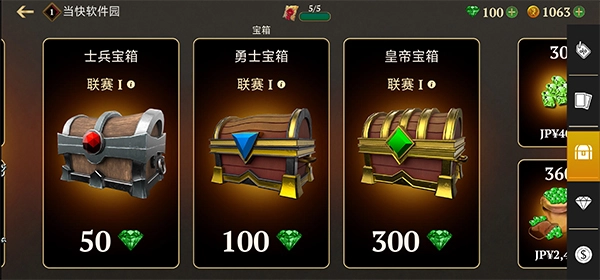 2、在首頁可看到氪金購買的是不寶箱以及更加高級(jí)的紅寶石寶箱,其他寶箱購買可點(diǎn)擊右側(cè)的寶箱圖標(biāo)