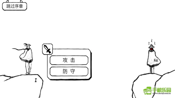 2、劇情結(jié)束之后會(huì)可以開(kāi)始選擇攻擊還是防守,無(wú)所謂,隨便點(diǎn)擊一個(gè),因?yàn)槎际菚?huì)被擊敗;