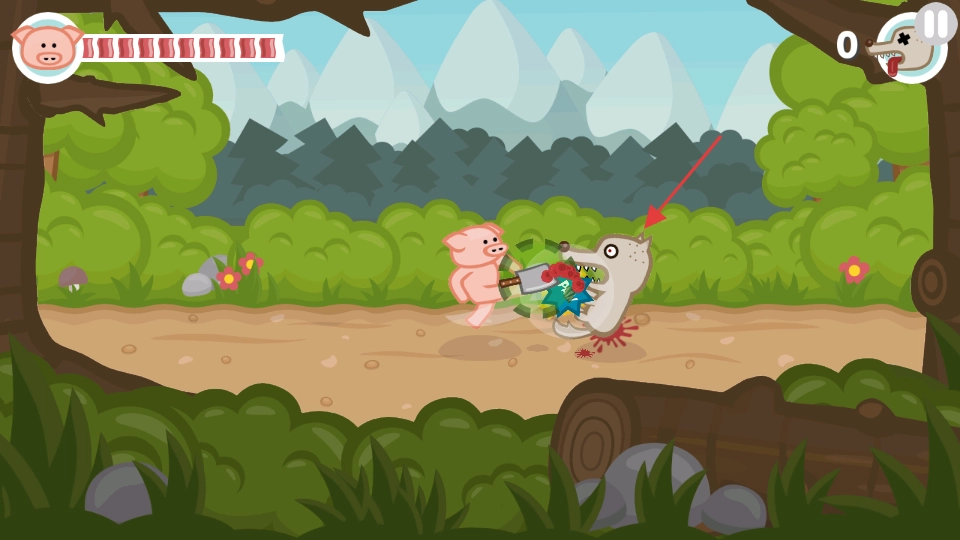 4、當遭遇狼群時,要快速點擊屏幕來讓小豬發動攻擊,同時通過滑動操作調整位置,精準地擊打敵人以造成有效傷害,并且要盡快擊敗對手,防止血量耗盡。