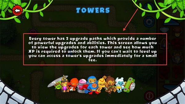 1、每座防御塔設有兩條升級路線,能夠查看解鎖所需的【XP】,通過付費可即刻解鎖升級,從而提升塔的戰斗效能。