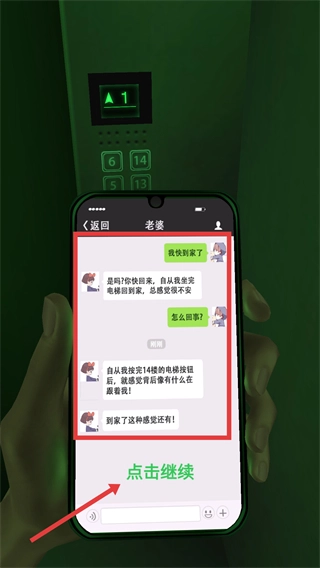 2、查看手機內的聊天記錄,獲取劇情相關信息后,點擊【點擊繼續】按鈕以推進流程。