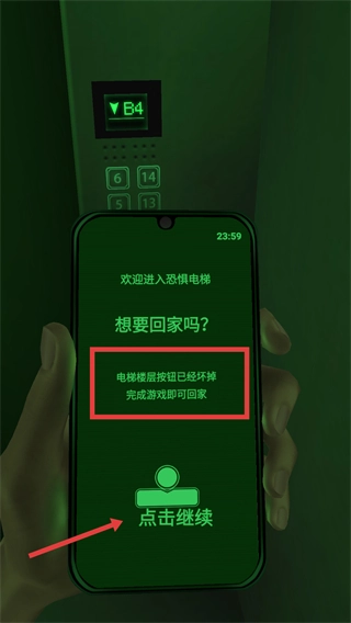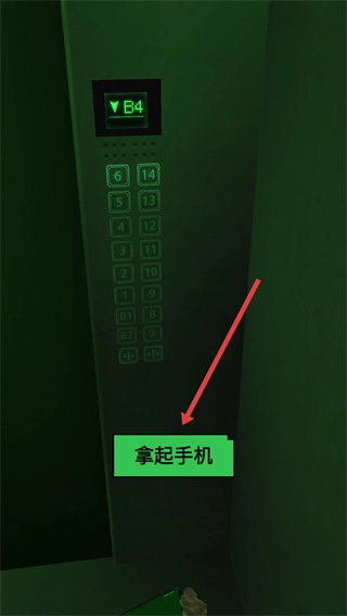 3、在電梯場景中點擊【拿起手機】,獲取該道具以解鎖后續的劇情交互內容。