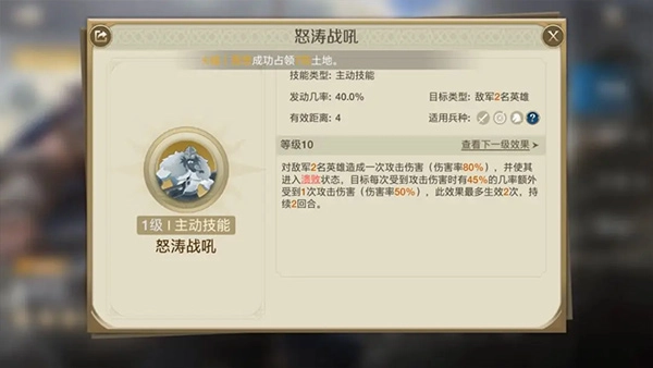 二技能的話,這里可以掛撞陣沖軍或者乘勝追擊,前者是前兩回合有概率普攻多a一下,后者是普攻后有概率再a一下,且降對面攻防。這里推薦前者,因為前者的發(fā)動概率是60%,后者只有25%。另外還有一張強攻猛打,單體打3,發(fā)動概率30%。