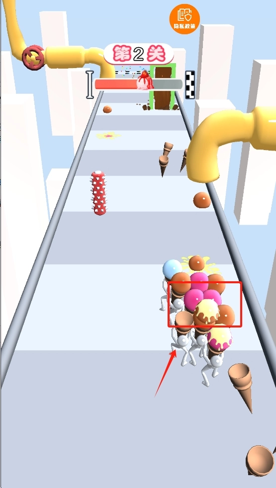 4、多樣障礙設計:不同關卡會遇到形態各異的障礙物,要求玩家靈活應對,保持甜筒的完整無損是通關關鍵。