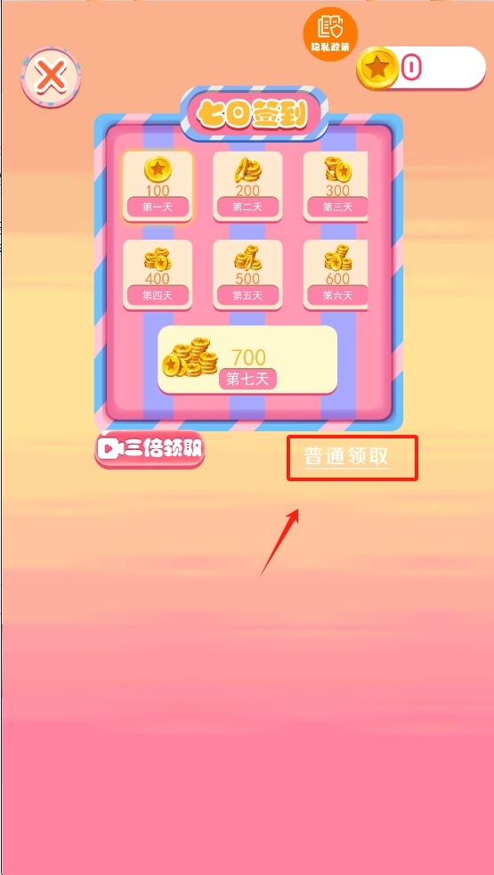 4、點擊簽到按鈕,領取每日獎勵,連續簽到可獲得更多金幣和道具。