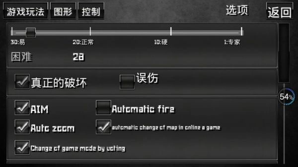 在“游戲玩法”設置里有個“Automatic fire”選項,它對應的是自動開火功能,你需要將這個選項前面的√取消掉,就像上面圖片展示的那樣。