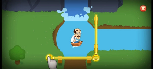6、玩家需要巧妙移動關卡內的障礙物,堵住污水并砸死鯊魚,最終抵達終點。