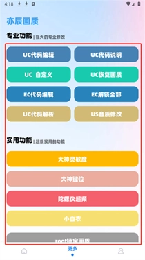 8、在更多頁面,我們為大家提供了UC代碼編輯、大神靈敏度、陀螺儀超頻等功能供使用