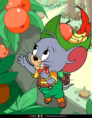 來到貓鼠世界后的羅賓漢泰菲同樣也戴著與羅賓漢杰瑞款式相似的綠色帽子,紅色的樹葉俏皮的飛舞,略帶嬰兒肥的身形真是萌到不行。雖然羅賓漢泰菲只是一直穿著尿布的寶寶鼠,但眼神中的機(jī)敏可是透露著這只小老鼠可不簡單哦。