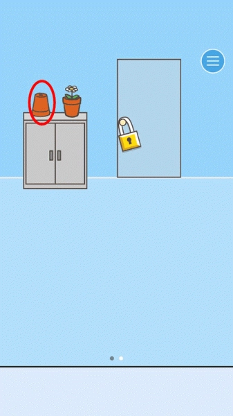 點擊在第二個場景門口柜子上倒著放的花盆就能找到鑰匙。