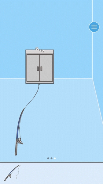 把場景移到第三個場景,我們可以看見柜子上有把鑰匙,這個時候我們就需要動動我們的小腦袋了,如果這么輕易的就能拿到鑰匙,那我們第一個場景拿到的釣竿有什么作用呢?嘗試下的把釣竿往鑰匙那放了一下,這樣就得到鑰匙了。如果直接拿鑰匙,會掉落到領導布置的陷阱之中。