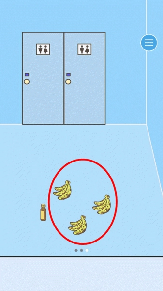 我們先把視角移動到第三場景,通過移動的時候我們發現除了玩家還有三個人而第三個場景有2個衛生間和三個香蕉還有一瓶不知道有什么作用的瓶子,瓶子經測試,點擊了它就會讓人強制加班,所以我們選擇掠過這個道具。