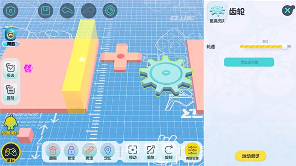 詳情界面中可以調整該組件的運動及其他屬性參數,不同的機關會有不同的參數可以調整(比如齒輪可以調整轉速)