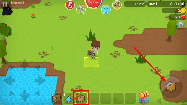 3、制作完成的設施會存入物品欄,點擊對應設施圖標,選擇空地區域完成放置,利用設施制作更復雜的工具或建筑,拓展生存功能。