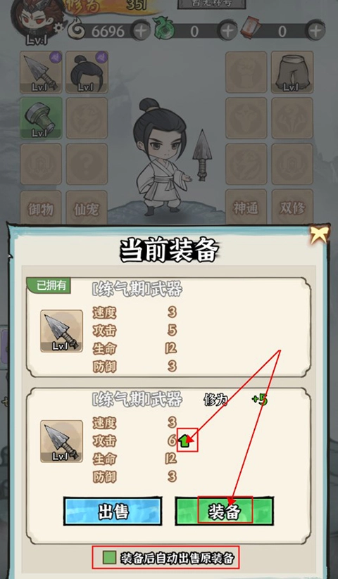 玩家開箱時可能得到屬性效果各異的同類裝備,部分裝備品質更優,需要手動切換。建議先查看新舊裝備的屬性對比,若新裝備旁出現綠色箭頭提示,即可直接點擊切換;同時勾選下方“裝備后自動出售原裝備”的選項,就能讓被替換的低級裝備自動售賣了。