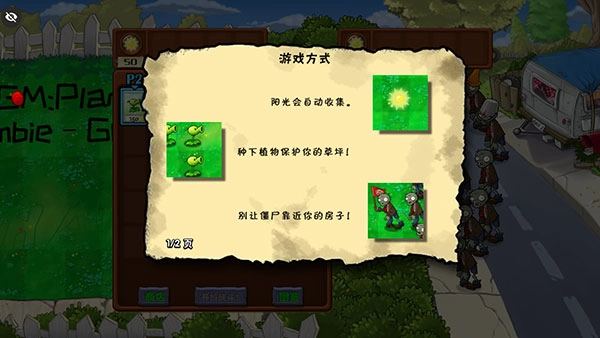 3、游戲玩法:陽(yáng)光會(huì)自動(dòng)收集,你需要種下植物來保護(hù)草坪,阻止僵尸靠近你的房子。