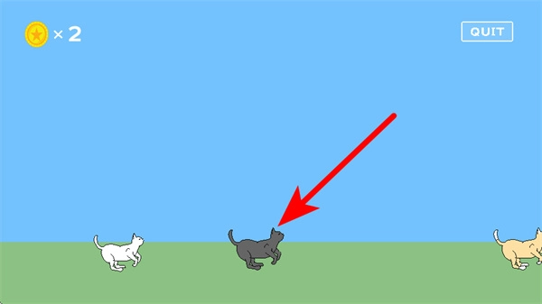 進入游戲后,點擊紅色箭頭所指的黑貓區域,觸發角色切換或互動,這是開啟跑酷流程的關鍵操作。