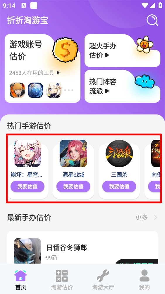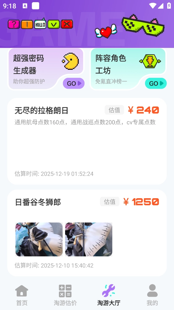 6、最后在"淘游大廳"可以進行查看各個游戲的估值。