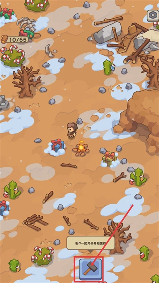 是一款主打原始荒野求生的休閑作品,玩家將穿越回資源匱乏的石器時(shí)代,從零開啟生存挑戰(zhàn)。告別現(xiàn)代文明的便利,依靠雙手摸索求生之道,在充滿未知危險(xiǎn)的原始世界里搭建家園、獲取物資,逐步掌握生存技能,體驗(yàn)從一無(wú)所有到建立穩(wěn)固營(yíng)地的成就感,感受原始社會(huì)獨(dú)有的生存樂趣。進(jìn)入生存場(chǎng)景后,點(diǎn)擊【斧頭】按鈕即可啟動(dòng)制作流程,作為收集木材等資源的基礎(chǔ)工具,它能幫助我們推進(jìn)前期的生存進(jìn)程。