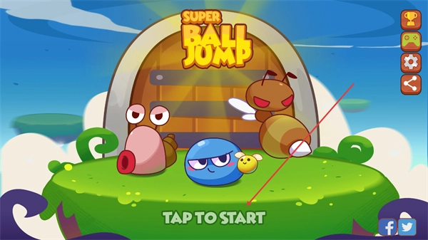 1、打開超級跳球彈跳冒險游戲界面后,點擊TAPTOSTART按鈕,就能啟動這款彈跳類游戲的游玩流程。