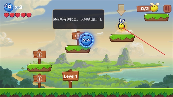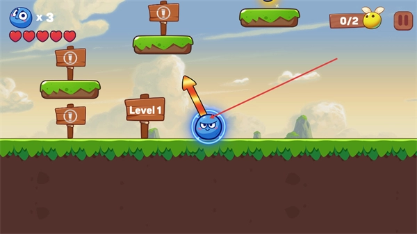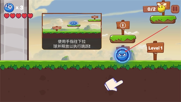 2、在游戲關卡中,按提示用手指下拉藍色球并釋放,即可控制其執行跳躍動作,推進關卡進度。
