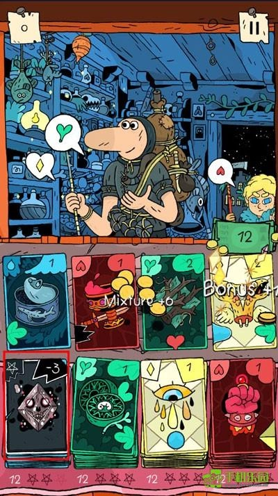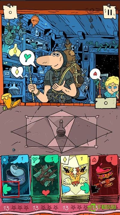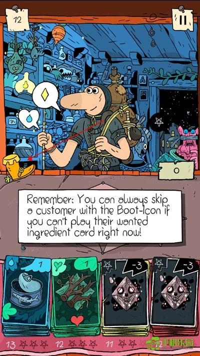 掌握藥水制作方法后,玩家就能解鎖商店并開始經營了。要注意的是,每位光顧的顧客都有專屬訂單——他們頭頂的文字泡泡會標明所需的藥水原料。制作時必須至少選用一張顧客指定的配料卡,不然游戲就會失敗。
