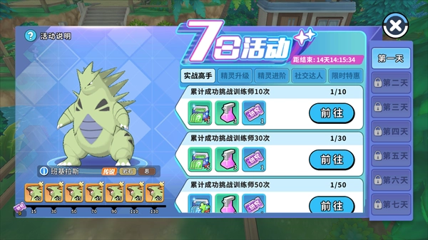 1、累計登錄獎勵:第二天可領取化石翼龍,第八天可領取卡比獸。
