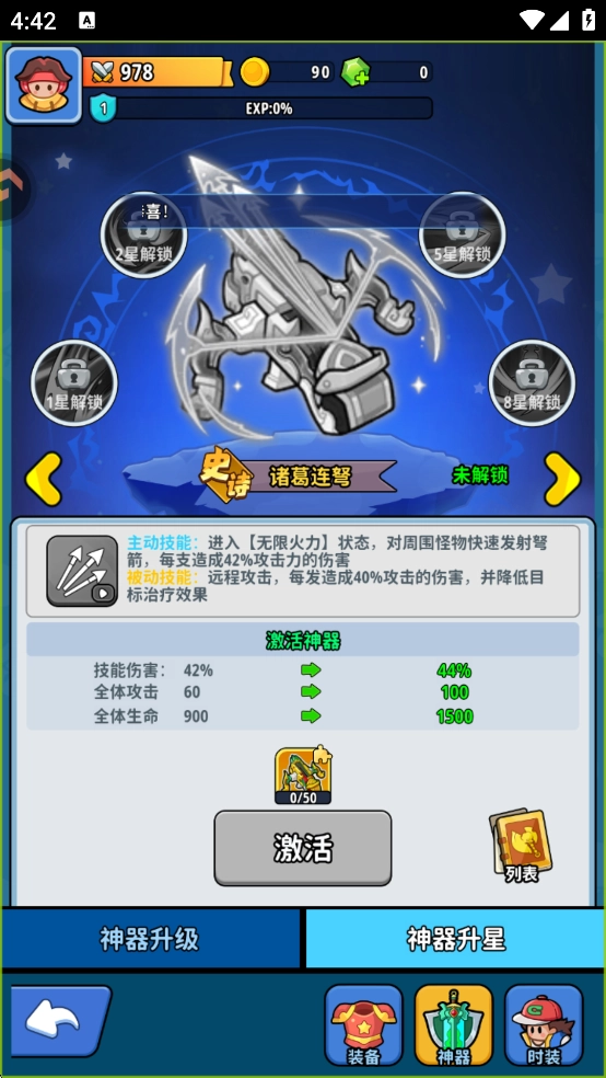 主動技能:進入【無限火力】狀態(tài),對周圍怪物快速發(fā)射弩箭,每支造成42%攻擊力的傷害