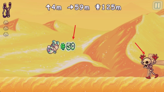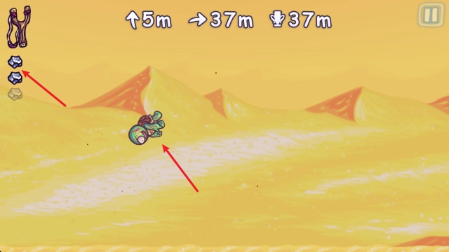 2、過程中通過點擊小烏龜可以發射彈弓進行彈射,幫助它飛到更遠的位置。