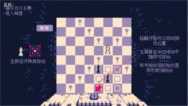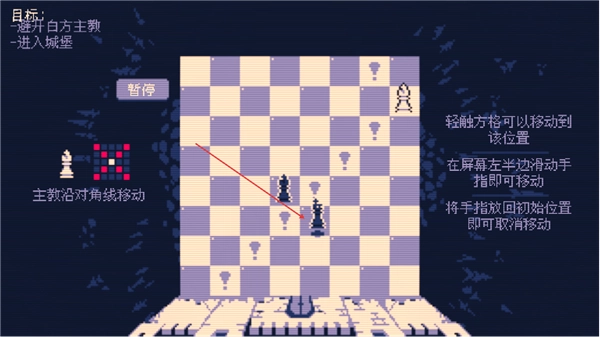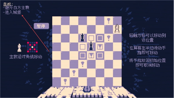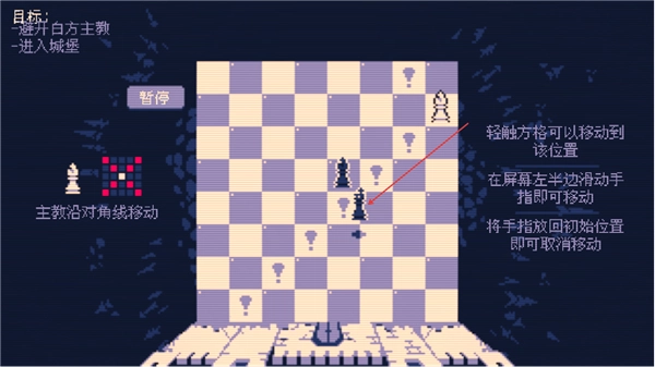 1、目標(biāo)很明確,就是要讓我方主教成功進(jìn)入城堡。主教的移動方式是沿對角線行進(jìn),只需輕觸目標(biāo)格子,就能讓它移動到相應(yīng)位置。