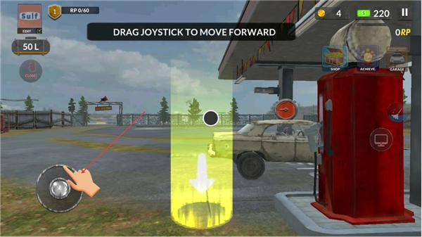 1、拖動操控桿向前,讓角色朝著加油站區(qū)域移動,為接下來的加油操作做好準(zhǔn)備。