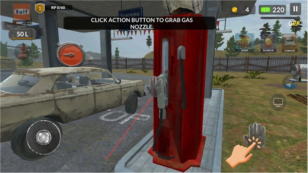 2、點(diǎn)擊動作按鈕,抓取加油機(jī)的油槍,為后續(xù)加油做準(zhǔn)備。