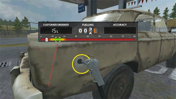 3、向左移動角色,將油槍插入車輛的油箱口,完成加油前的對接。