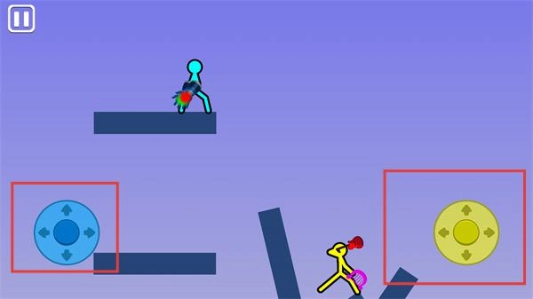 2、利用左側【藍色方向鍵】控制藍色火柴人移動,右側【黃色功能鍵】釋放攻擊技能。