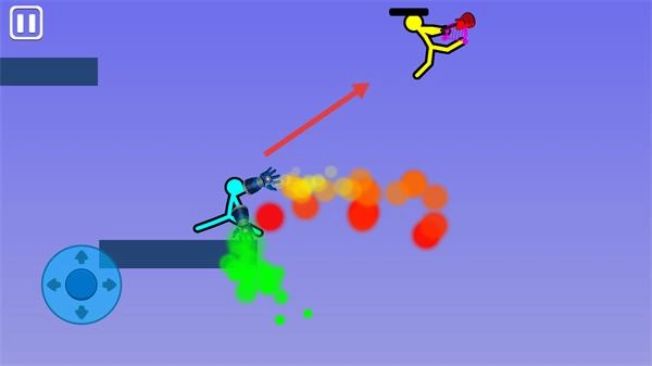 在對戰過程中,當藍色火柴人出現失衡狀況時,要迅速對其進行移動操控,以此躲避敵方接下來的攻擊。