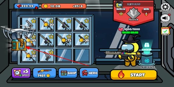 1、在主界面點擊無人機對應的寶箱,開啟后能獲得武器、金幣等資源,通過積累這些物資可以提升對戰準備狀態。